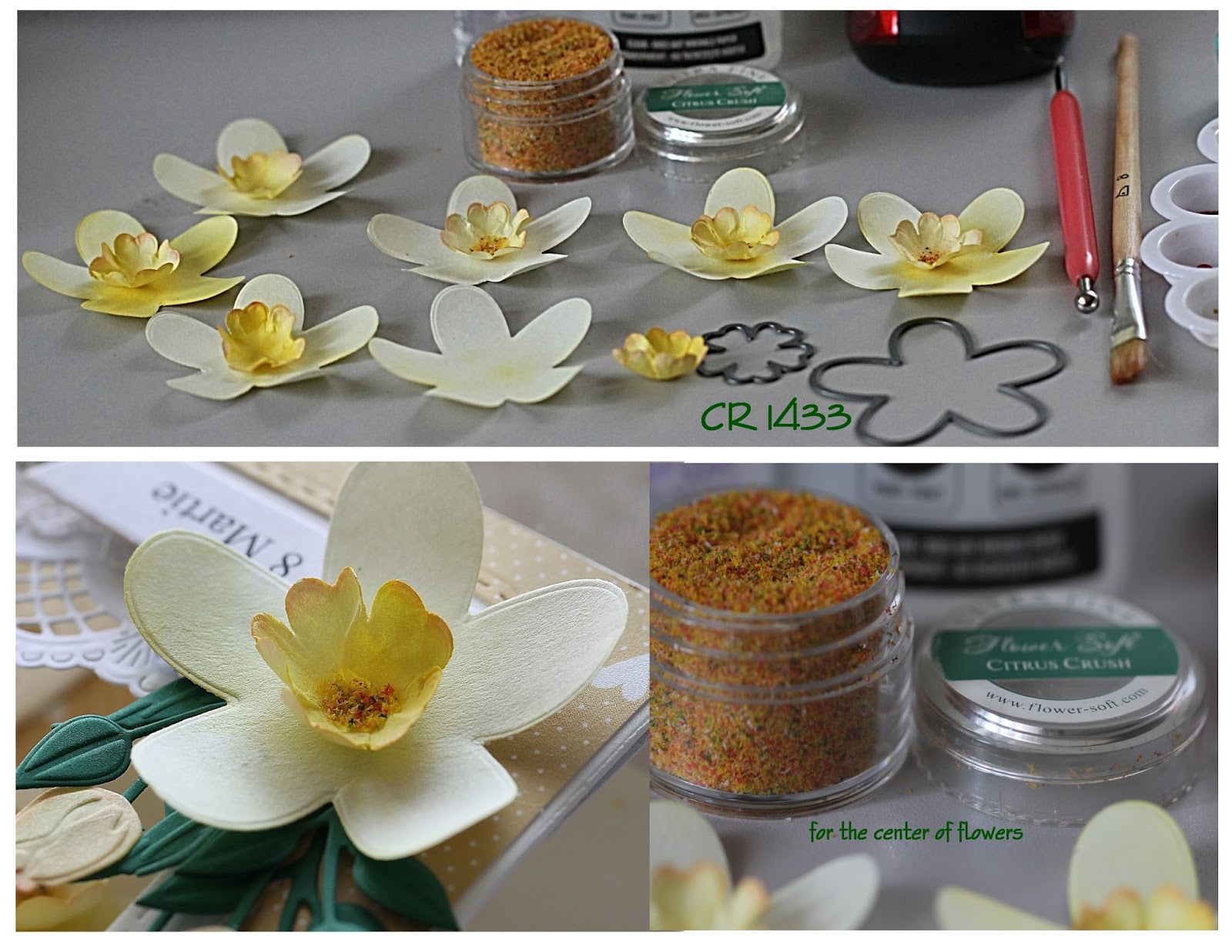 In the center of flowers I added some interesting materials as you can see in the photo below. Don't know what exactly it is, I received it from my friend Joan from USA. It is something special for handmade flowers.