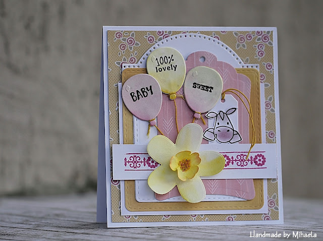 In the front side I cuted an square with CR3175 a middle size and over it I puted another rectangle from Pretty Paper Block with an larger size square. In the back of those squares I used the LR0407 Border and a thiny white lace from fabric.